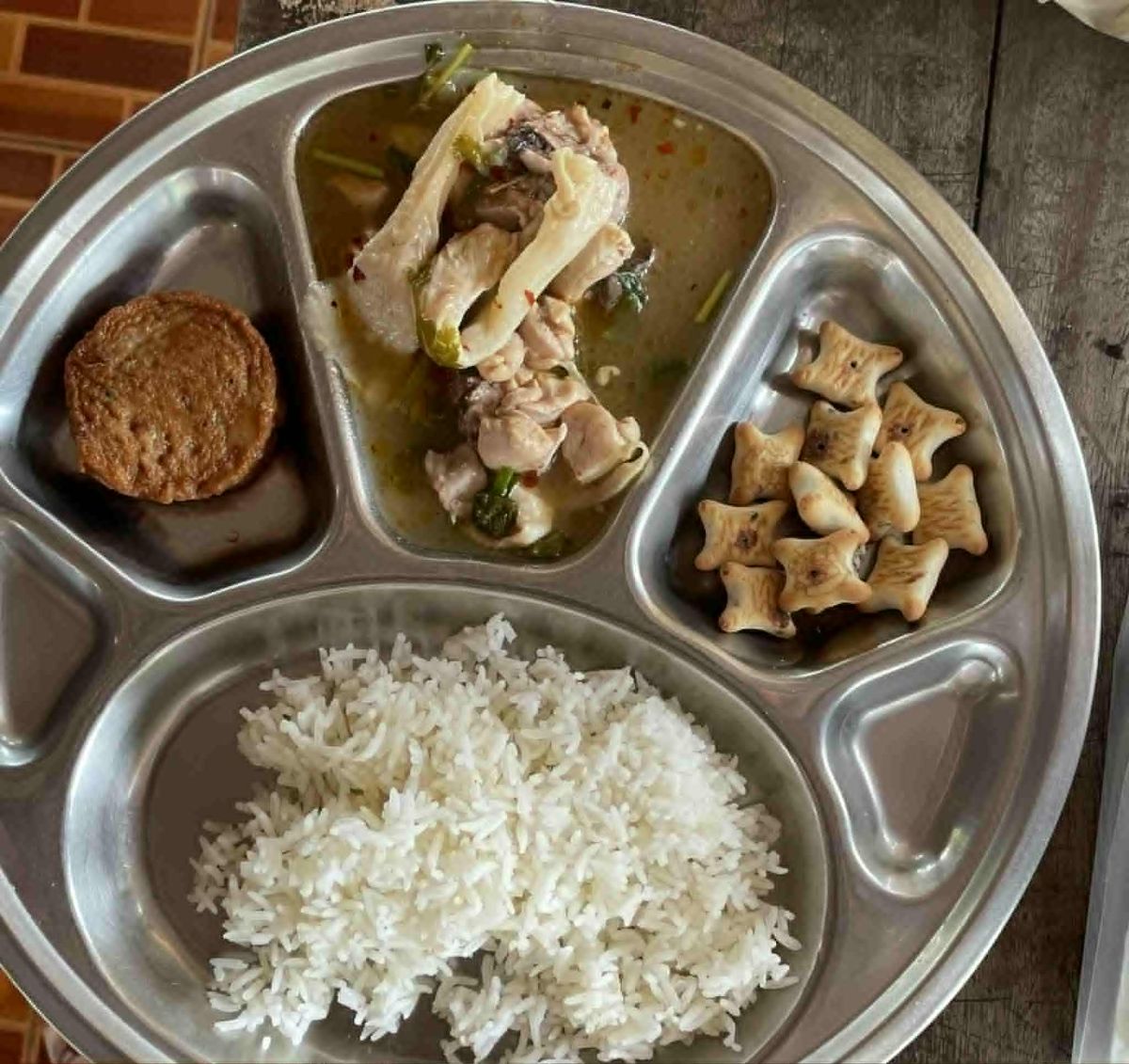 เมนูต้มยำไก่ รร. บ้านวังโพรง เป็นอาหารกลางวันที่มีคุณค่าทางโภชนาการสำหรับนักเรียน