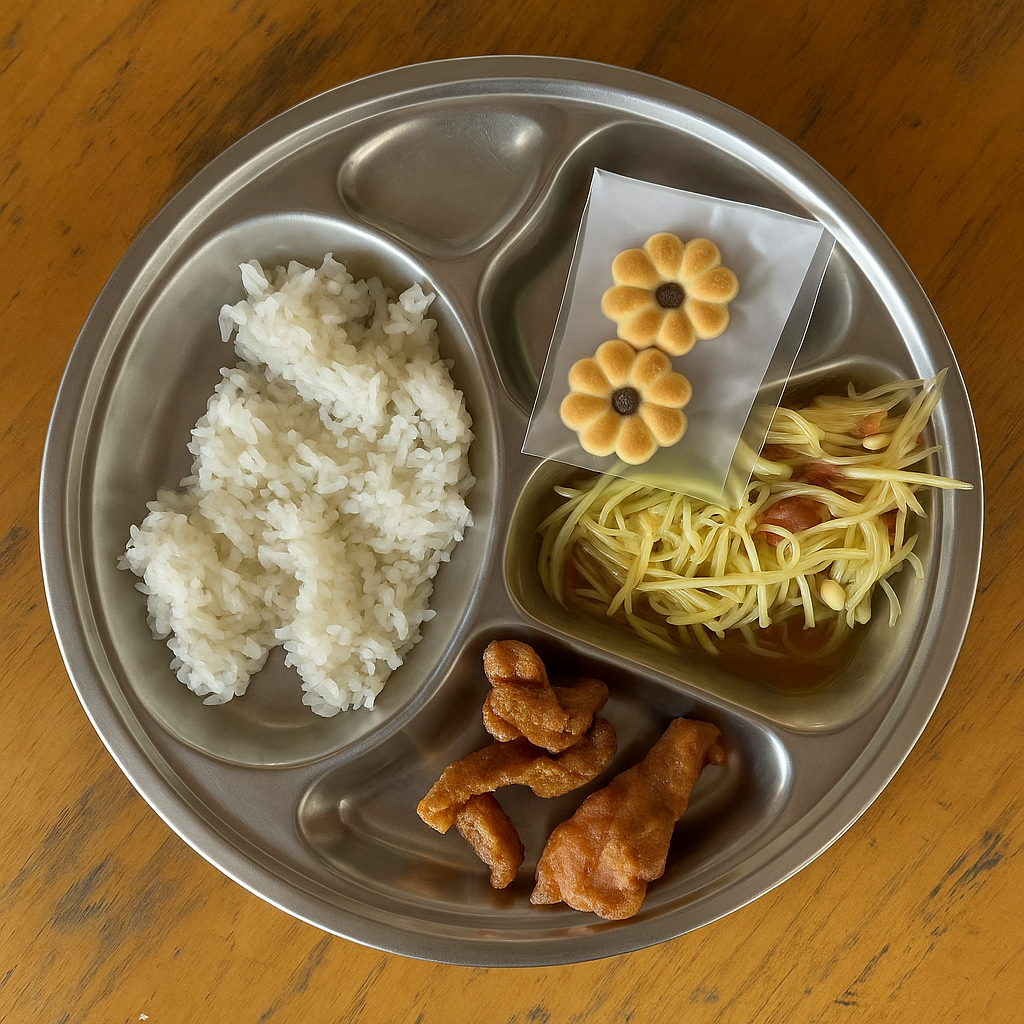 เมนูส้มตำไทย ผักสด เป็นอาหารกลางวันที่มีคุณค่าทางโภชนาการสำหรับนักเรียน
