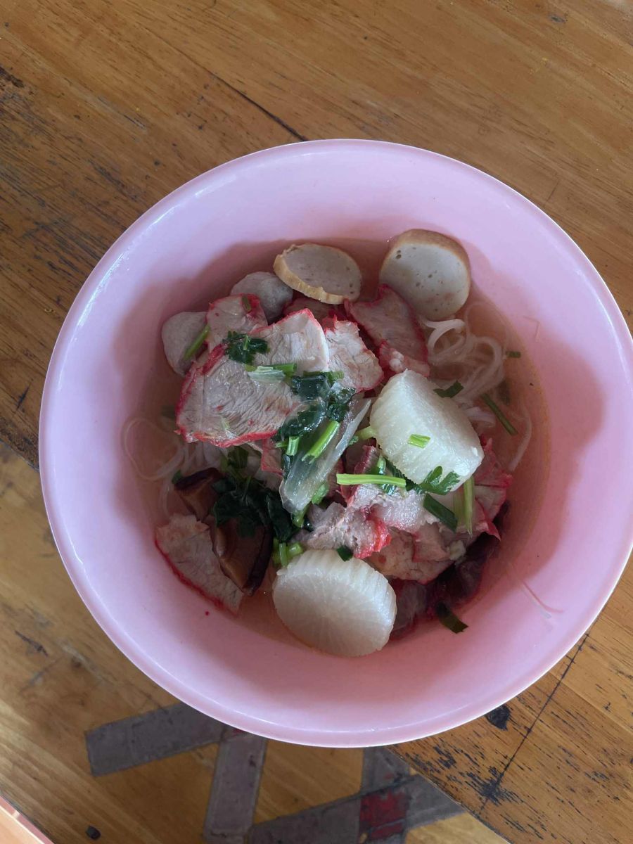 ก๋วยเตี๋ยวเส้นเล็กหมูแดง+ลูกชิ้น