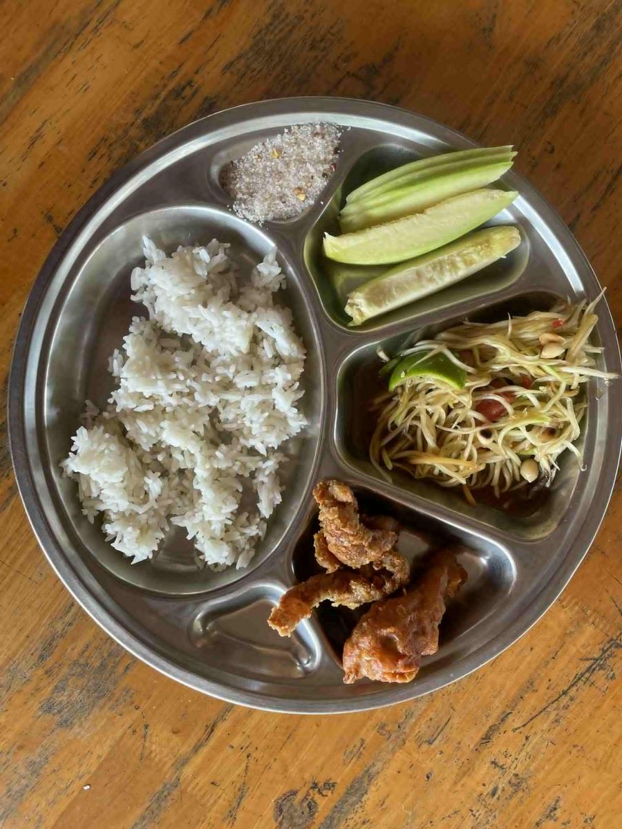 เมนูส้มตำไทย ผักสด เป็นอาหารกลางวันที่มีคุณค่าทางโภชนาการสำหรับนักเรียน